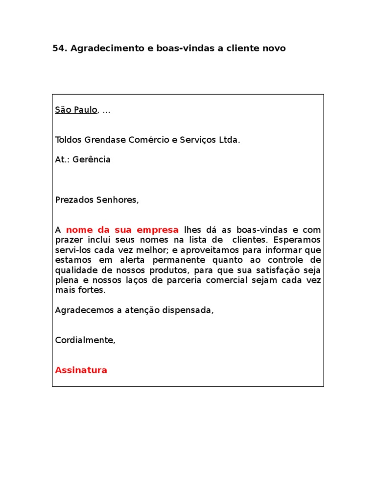Aqui você sempre será bem-vindo e recebido da melhor maneira. Desejo que você possa se sentir em casa e se precisar de qualquer coisa pode entrar em contato comigo que eu farei o máximo possível para te auxiliar. Dizer adeus é dar boas-vindas ao recomeço. 1 Seja muito bem-vindo à nossa equipe. Um dos objetivos desta carta é estreitar os laços com o novo cliente estabelecendo uma relação mais próxima e cordial. Sinceramente esperamos oferecer-lhe. Selecione um desenho que você gosta e edite-o conforme necessário. A taxa de conversão de emails de boas-vindas é de 094 em. A carta portanto deverá ter ao mesmo tempo um tom formal e.